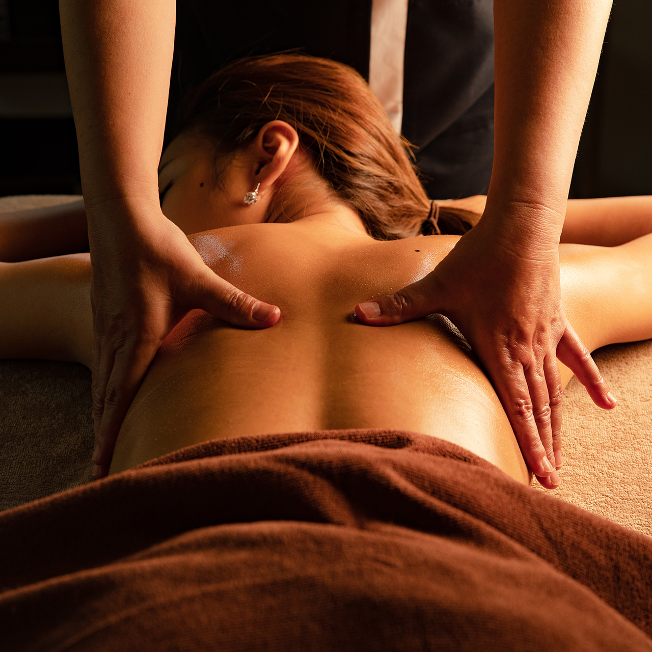 熟練したスタッフが脚、腕、お腹、胸の順に温かい糠をかけていきます。
