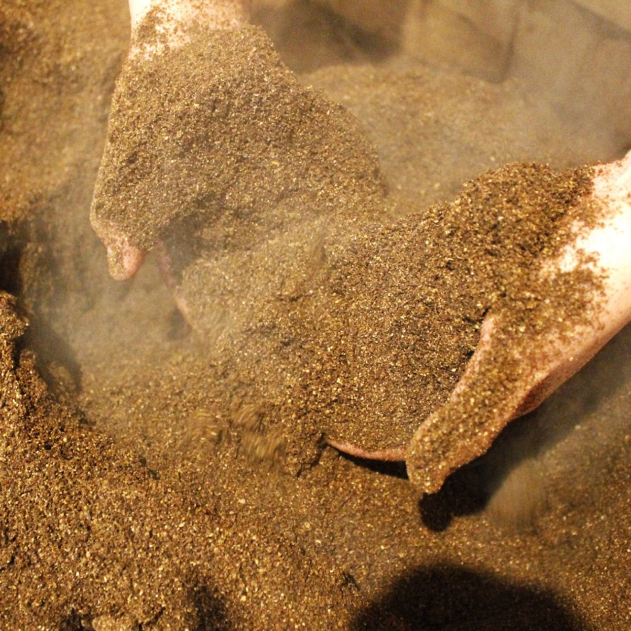 お客様の汗等は、糠が付いたままシャワーをして頂くので、ほとんど糠床には残りませんが、残った汗等は米糠菌が分解し栄養物となり、熱と酵素等を代謝・生成してくれます。